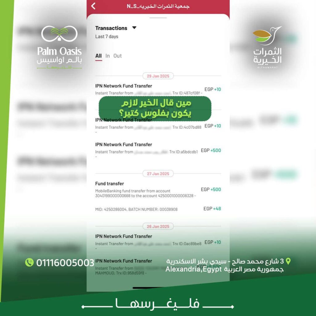 في ناس بتفكر إن الخير محتاج فلوس كتير، لكن الحقيقة بتقول إن كل جُنيه ممكن يكون له أثر كبير جدًا… وده شفناه مع شخص ملهم بيبعت 10 جنيه كل يوم لجمعية الثمرات الخيرية عن طريق انستا باي