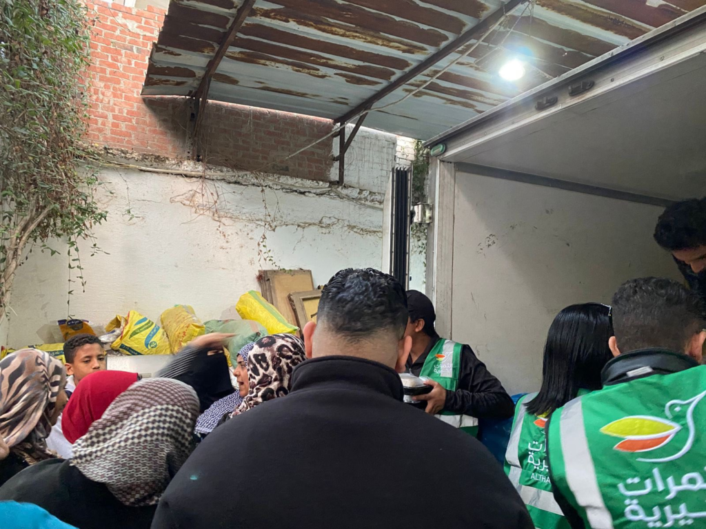 تبرع من البنك العربي بالتعاون مع بنك الطعام المصري وتم تجهيز الوجبات في مطبخ جمعية الثمرات الخيرية