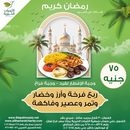 شهر رمضان هو شهر الجود والكرم، وفيه تتضاعف الحسنات. تبرعك بوجبات الإفطار في هذا الشهر الفضيل له أجر عظيم، ويساهم في إعانة المحتاجين وإدخال السرور على قلوبهم.