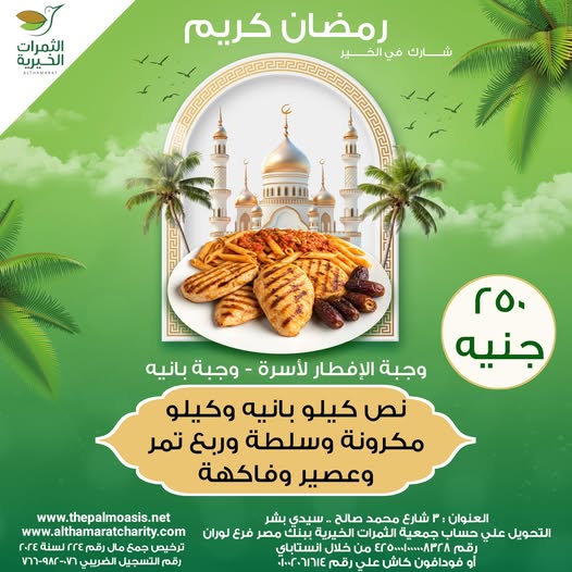 شهر رمضان هو شهر الجود والكرم، وفيه تتضاعف الحسنات. تبرعك بوجبات الإفطار في هذا الشهر الفضيل له أجر عظيم، ويساهم في إعانة المحتاجين وإدخال السرور على قلوبهم.